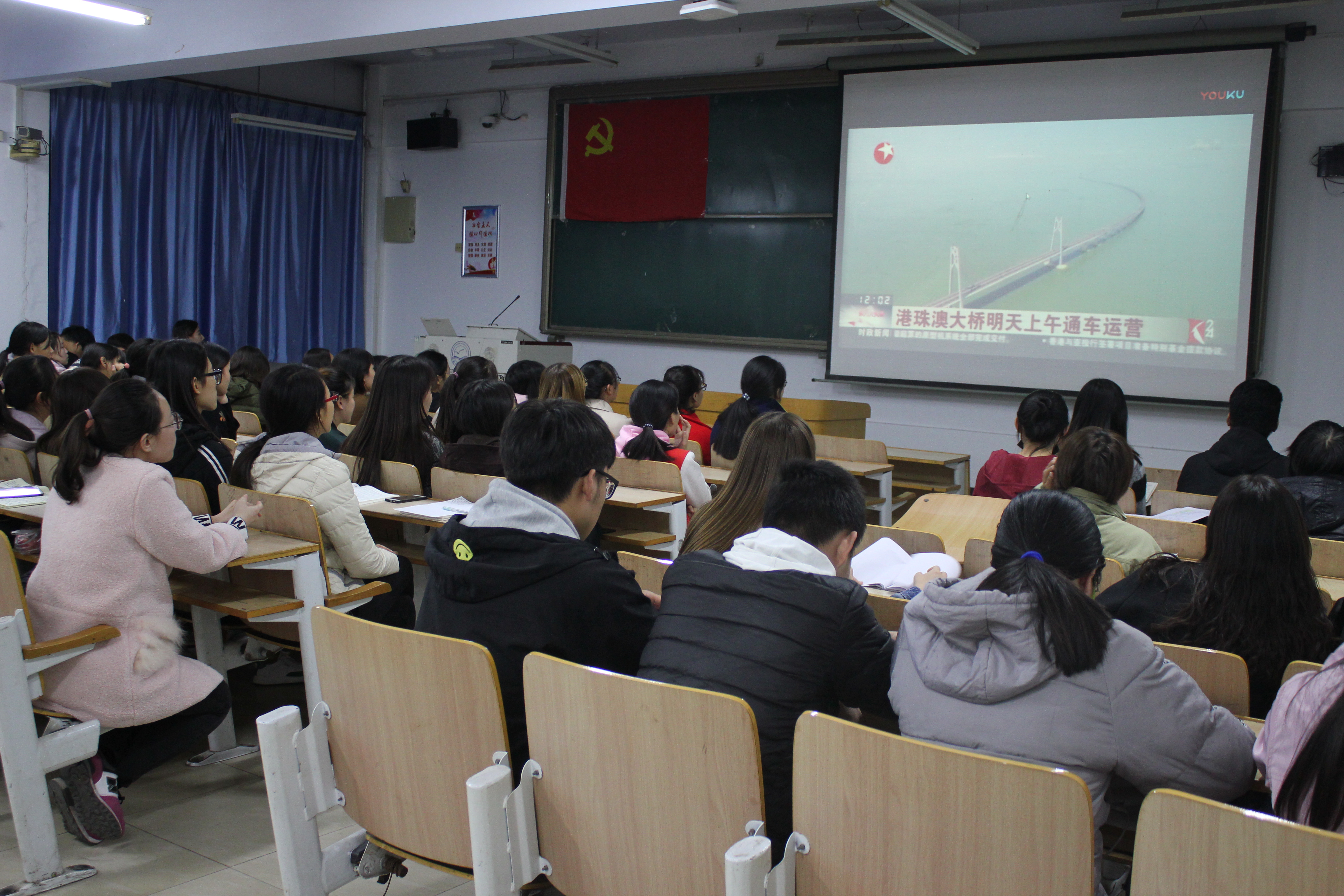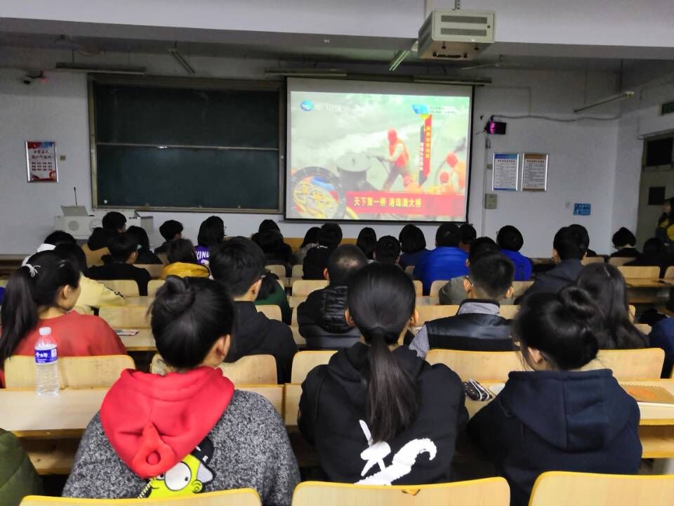 2018年10月23日上午,港珠澳大桥开通仪式在珠海公路口岸举行。世界上第一跨海大桥——“港珠澳大桥”正式建成通车,为全世界瞩目。为庆祝我国桥梁建设事业这一伟大壮举,弘扬中华民族艰苦奋斗、自力更生的崇高精神,感怀改革开放的历史性成就,增强民族自豪感。10月28日晚,yl7703永利官网党委分两场组织青年学生党员、入党积极分子和共青团员观看了大型纪录片《港珠澳大桥开通仪式》和《港珠澳大桥》等视频资料,300名学生参加了活动。