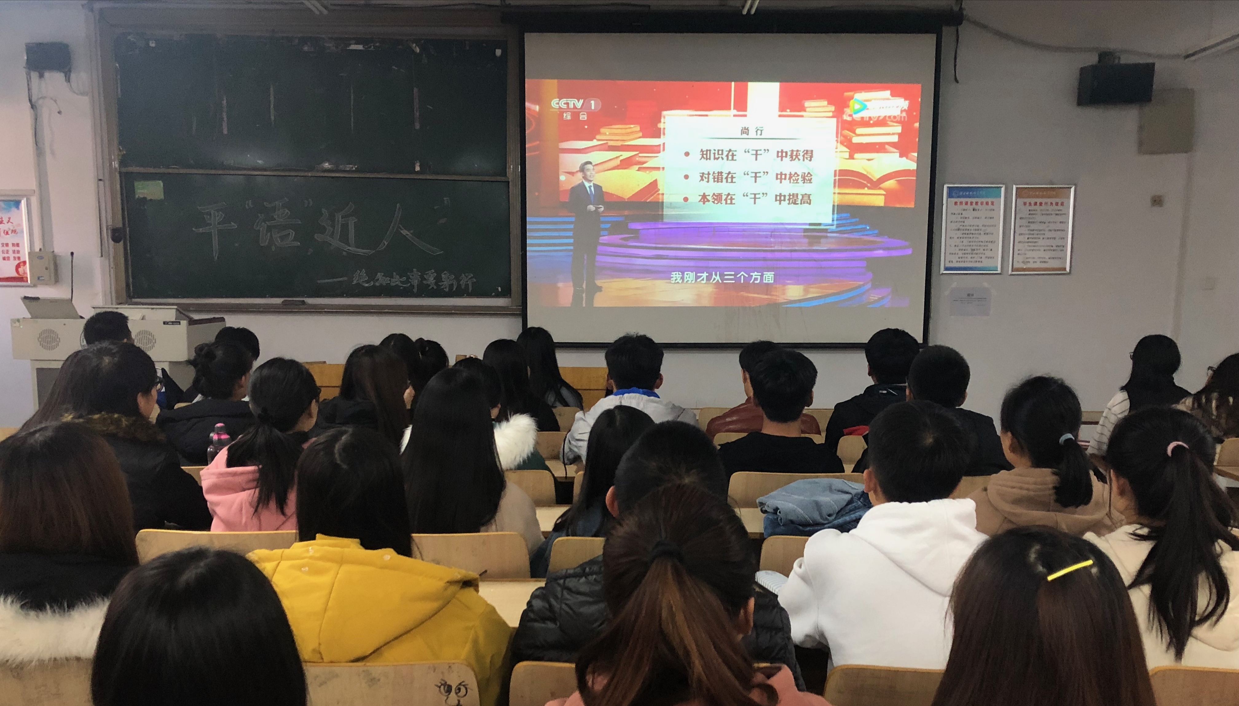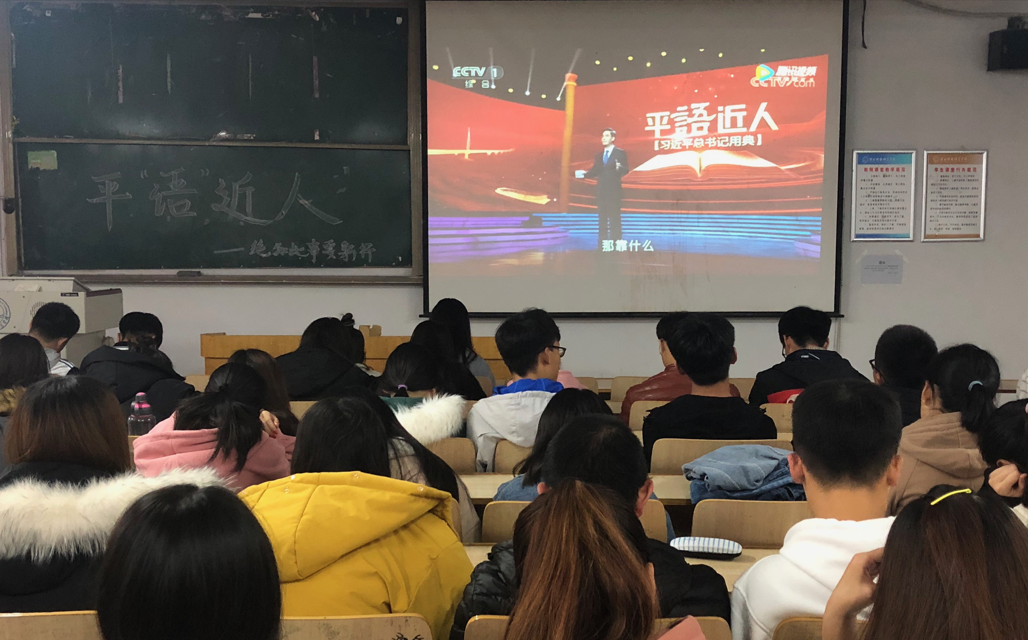 为不断把学习十九大活动引向深入,进一步推动习近平新时代中国特色社会思想的生动阐释与广泛传播。2018年11月10日,yl7703永利官网党委分两场组织学生党组织、学生班团组织近280名青年学生党员、入党积极分子、共青团员等学习收看了中共中央宣传部、中央广播电视总台联合创作的《百家讲坛》特别节目《平“语”近人——习近平总书记用典》。在学院广大青年学生中营造浓厚的学习习近平新时代中国特色社会主义思想的氛围。