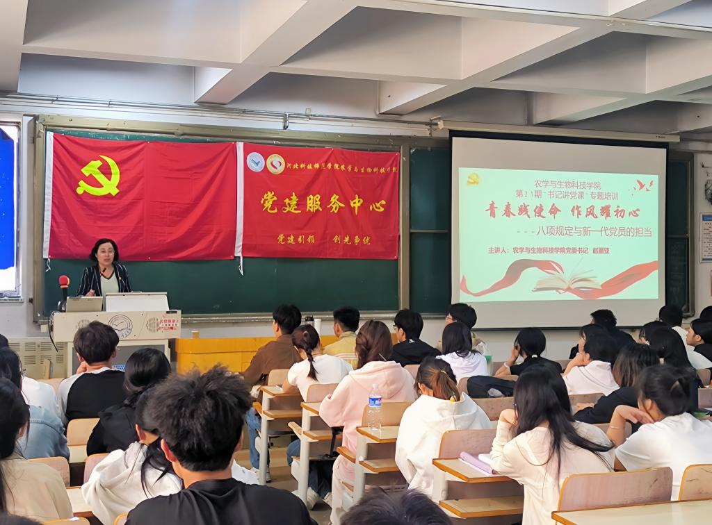 5月15日,学院党委书记赵丽亚以《青春践使命 作风耀初心--八项规定与新一代党员的担当》为题在B105为学院师生讲授专题党课。全院师生党员、积极分子共计100余人参加。